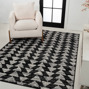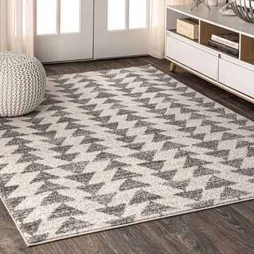Inspired by vintage Moroccan tribal rugs, our modern version is power-loomed with a short pile. Rows of triangle symbols are woven in black on a field of ivory; the mingled threads recall traditional handwoven rugs. Add some Bohemian style to your home with this easy-care rug.