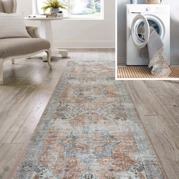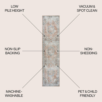 This distressed chenille rug may be designed to look vintage but it is decked out with non-slip ridged backing. Machine-washable, this rug is durable and easy to care for. Our low-pile rug adds a mid-century touch to any family home.