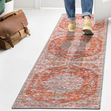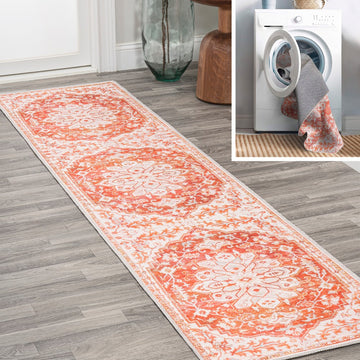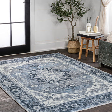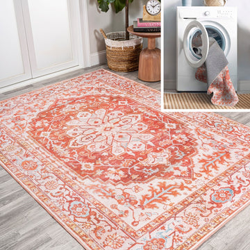 An ornate medallion in the center of this design recalls traditional Persian rugs, but updated colors add a modern Bohemian-inspired twist to the classic design. Ivory mingled with shades of clay creates a vintage, distressed look. Use this stylish rug in a city apartment or coastal home; dress up a bedroom, living room, dining room, entry or porch.