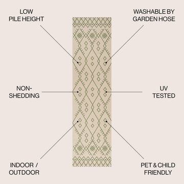 - Durable and easy-care - just sweep or hose down with mild soap and water
