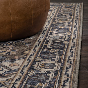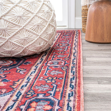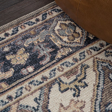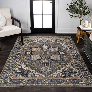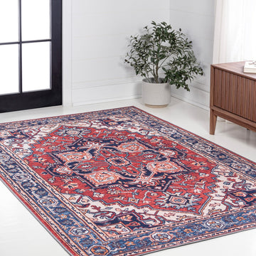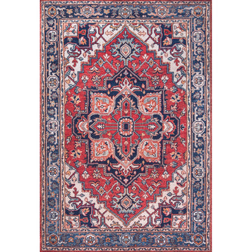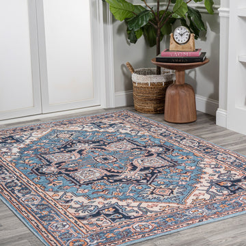The diamond-shaped medallion in the center of this rug's design remind us of ancient geometric tribal rugs. Rich colors add a Bohemian-inspired twist to a classic design. With its pet-friendly pattern, this easy-care rug would be perfect for a dining room, living room, entry, bedroom or porch.