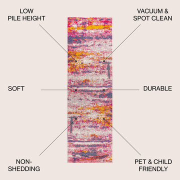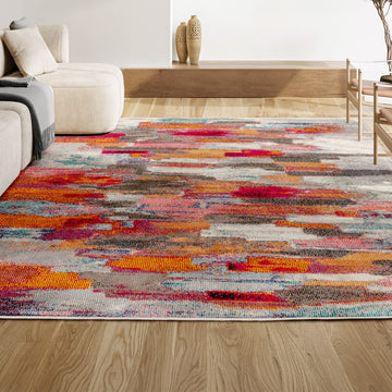 Abstract and heavily inspired by close-range views of impressionist masterpieces, this rug design is worthy of a wall, but at home on the floor. Power loomed from super soft polypropylene in shades of red, pink, coral, orange, gray, beige and ivory the palette is well suited to a variety of color schemes.