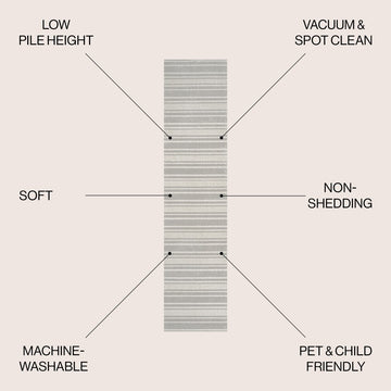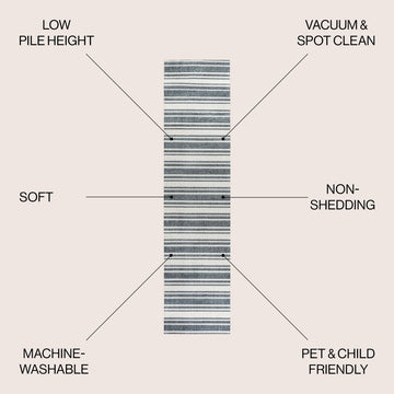 This two-toned rug combines stripes of different thickness to create a bold but classic design. Being machine-washable means it's easy to care for and is great for homes with kids and pets. It's the perfect accent for a casual or farmhouse styled living room, home office, or bedroom.
