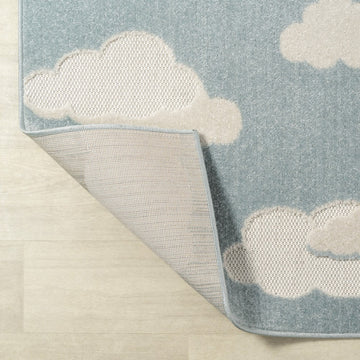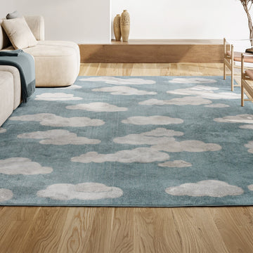 Featuring cool clouds and a soft backdrop, this Scandi-style rug invites a sense of serendipity to any room. The sky-inspired design is both eye-catching and nostalgic for dreamy, childhood memories. Made from pet-friendly synthetic fibers, this soft and durable rug is easy to clean.