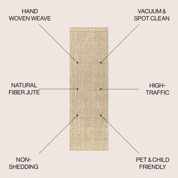Natural jute fiber and a chunky texture make this handwoven rug a great addition to your home. The woven boucle' pattern has rows of tightly-woven loops can be used almost anywhere, in rustic, modern or traditional rooms. This rug is reversible for longer wear.