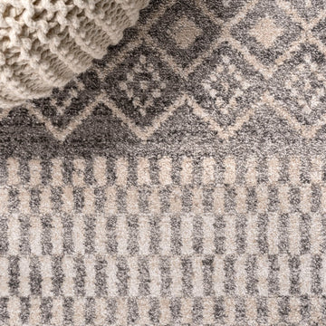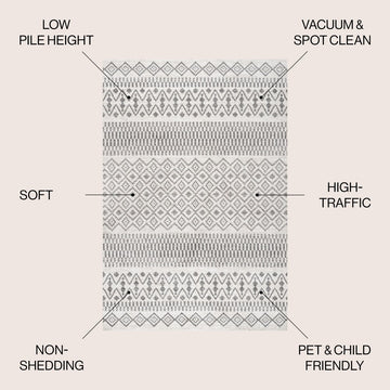 Inspired by vintage Moroccan tribal rugs, our modern version is ideal for a living room, bedroom or entry. Berber-inspired geometric designs are woven in ivory on a field of gray; the mingled threads recall traditional handwoven rugs. Add some Bohemian style to your home with this easy-care rug.