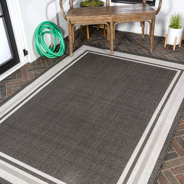 Inspired by the clean lines of modern design, our stripe border rug has a durable low pile. This versatile pattern is woven in contrasting colors for a low-key, minimalist look. Add graphic punch to your living room, dining room, bedroom, or porch with this easy-care, family-friendly rug.