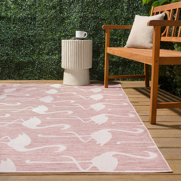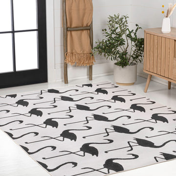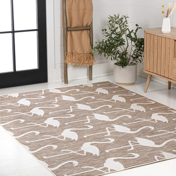 Liana Casual Coastal Flamingos Two-tone Indoor/Outdoor Area Rug