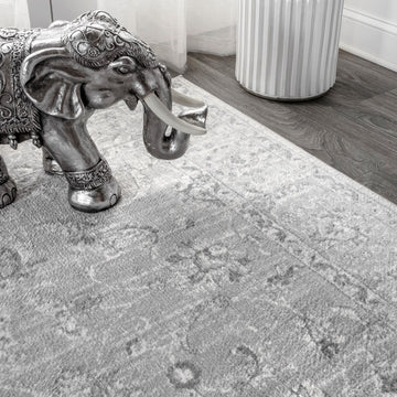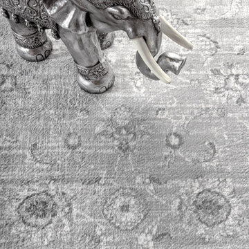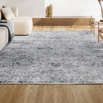 Add an elegant touch to any room with this traditional rug. In soft, tonal colors, this classic rug is crafted from a durable synthetic fiber and features a luxe, plush pile, creating a sophisticated look. With a broad border and subtle scattered floral interior design, it looks like an heirloom, but with the durability expected of modern rugs.