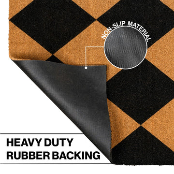 - Classic natural coir in straw-brown with a diamond pattern in black
