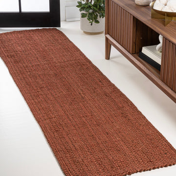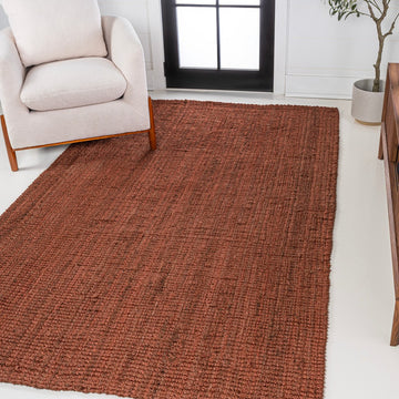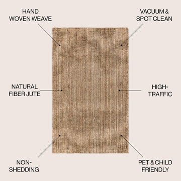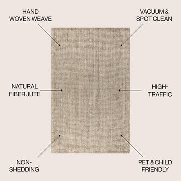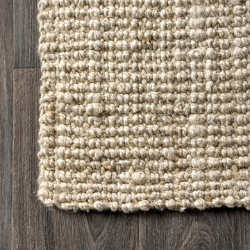 Natural jute fiber and a chunky texture make this handwoven rug a great addition to your home. The solid jute color works almost anywhere, in both modern or traditional rooms. This rug is reversible for longer wear.