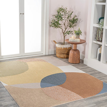 This whimsical rug boasts an abstract and kid-friendly pattern. Made of machine washable fibers, this rug is the perfect addition to any busy home. Whether it's in a playroom, bedroom, or home office, this rug will add style to any contemporary or transitional space.