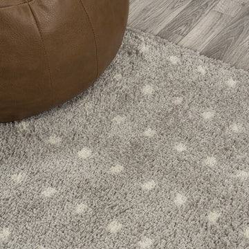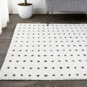 Inspired by mid-century rugs, our geometric dot rug has a soft, low shag pile. The all-over pattern is woven in black on an ivory background. Add some graphic punch to your living room, bedroom, or reading nook with this easy-care rug.