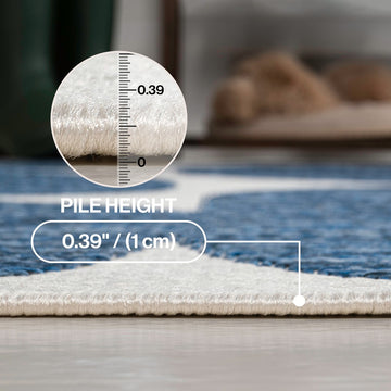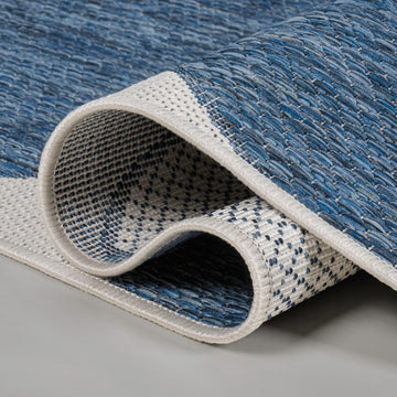 This rug's modern geometric pattern is inspired by organic shapes in Scandinavian design. It's made from durable synthetic fibers woven into a bold pattern. Use this stylish rug outdoors, or in the bedroom, living room or dining room.