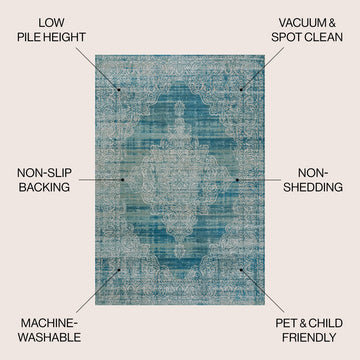 - Shades of blue and cream give this classic rug its Bohemian cottage look