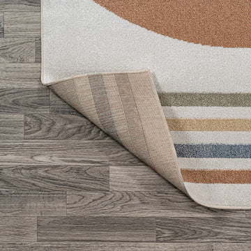 This kid-friendly washable rug features a youthful abstract design. With its colorful modern pattern, our rug is ideal for any playroom, home office, or bedroom. The pet-friendly synthetic fibers are easy to clean, making this rug the perfect choice for busy families.