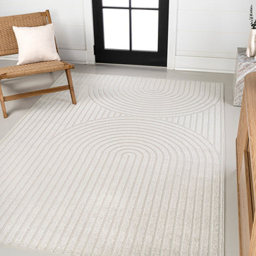 Sofia High-Low MidCentury Modern Arch Stripe Two-Tone Indoor/Outdoor Area Rug