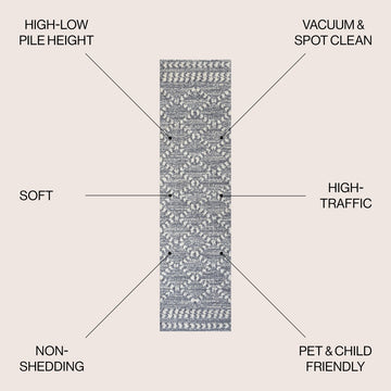 - Power loomed from durable synthetic fibers, with mixed pile heights up to 0.79"