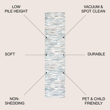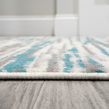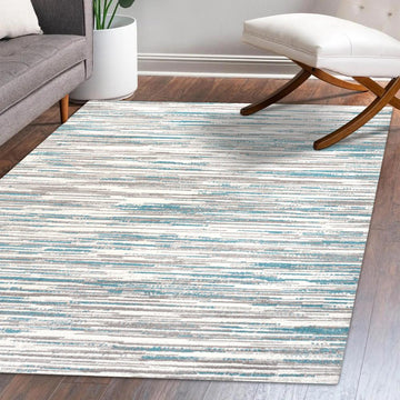 Mingled colors form an abstract stripe pattern to create a linear design with modern flair. This rug's busy pattern and gradient colors make it perfect for homes with kids and pets. It's a versatile addition to the living room, bedroom or dining room that's got a contemporary, coastal or minimalist interior.