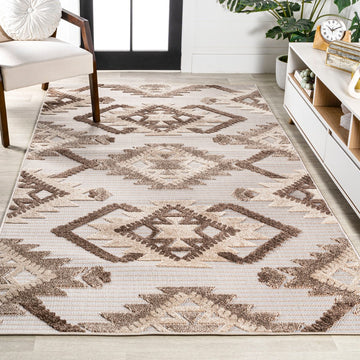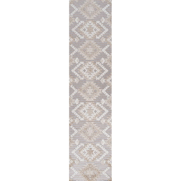 Sumak High-low Pile Neutral Diamond Kilim Area Rug