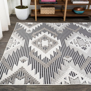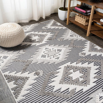 Inspired by ancient kilim rugs, our family-friendly geometric rug is power-loomed with a short pile. The all-over pattern is woven in a modern, neutral color palette. Add some graphic mid-century punch to your living room, dining room, entry, or bedroom with this easy-care rug.