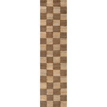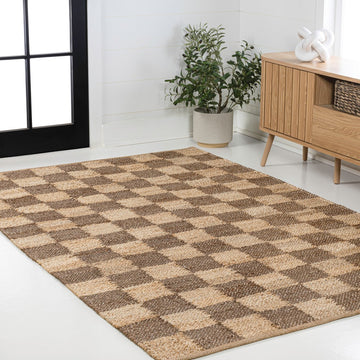 Theo Modern Farmhouse Woven Jute Checkerboard Area Rug
