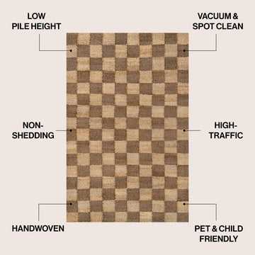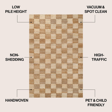 Our bold checkerboard rug adds a whimsical touch to the farmhouse look. This durable rug is woven from real jute and cotton fibers that are strong and flexible. Our versatile rug makes a statement in the living room, office, bedroom or entry.