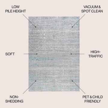 Mingled threads of turquoise, gray and ivory create a modern, abstract linear design with a mid-century look. This rug's unique strie' stripe pattern makes it perfect for homes with kids and pets. It's the ideal centerpiece for a contemporary, coastal or minimalist interior.