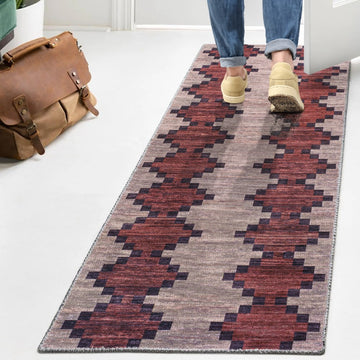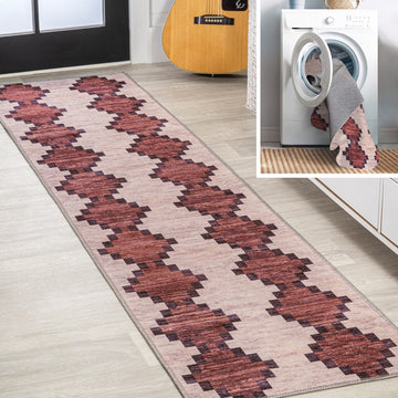 Inspired by tribal kilim rugs, our machine washable geometric-striped rug adds graphic punch to your home. Classic medallion trellis pattern has been updated with a modern color palette that's ideal for mid-century interior design. This easy-care, family-friendly rug is a smart addition to your living room, dining room, entry, or bedroom.