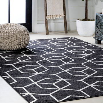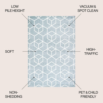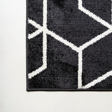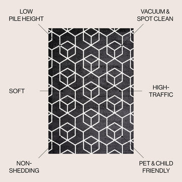 Inspired by mid-century geometric patterns, our tumbling block design is woven in ivory on a deep gray background. This versatile rug's minimalist look is perfect for a Scandinavian style living room, modern bedroom, hallway, or entry. The pet-friendly and kid-proof flatweave design makes it easy to clean, and ideal for busy families.