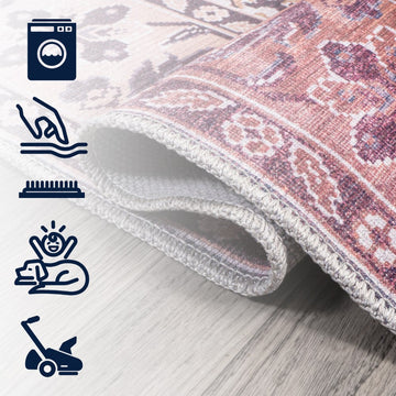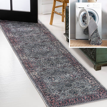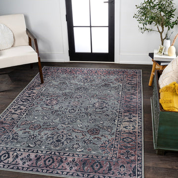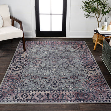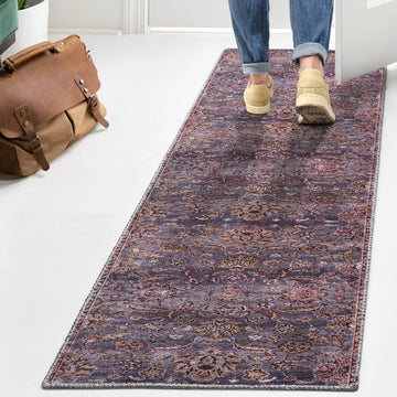 Layer on the cottage style with this rug's traditional Persian floral design. The busy, family-friendly pattern mixes rich tones on a distressed background for a vintage vibe. It's the perfect start to Victorian decor for a bedroom, living room, entry, dining area or porch.