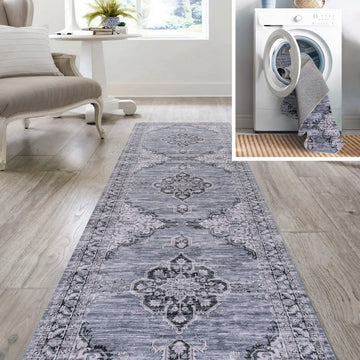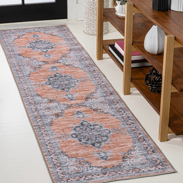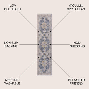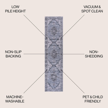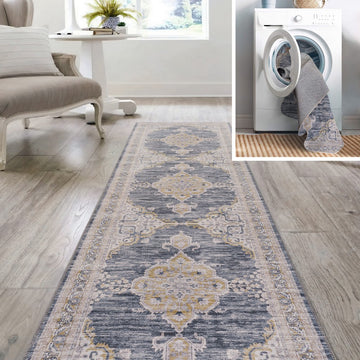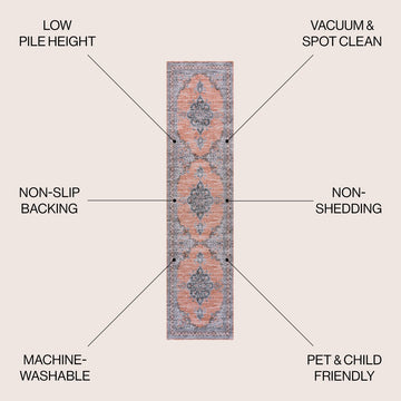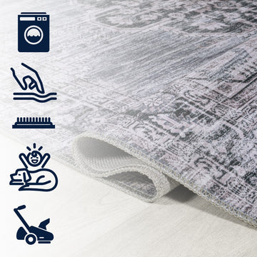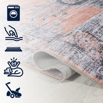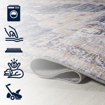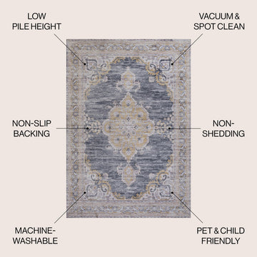 Add a traditional touch with our chenille medallion rug. This multi-colored Persian rug adds a dose of mid-century design to any bedroom, office, or living room. Perfect for busy family homes, this rug is machine-washable and has an integrated non-slip backing.