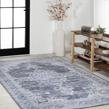 Wincer Chenille Cottage Medallion Machine-washable Area Rug