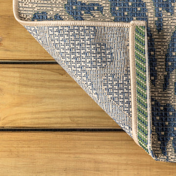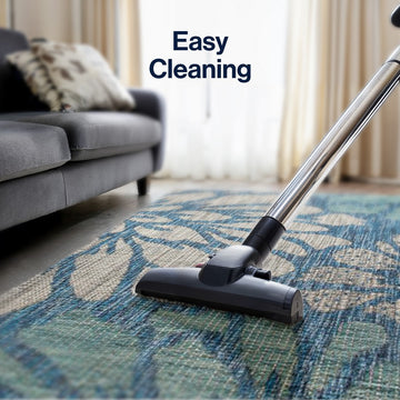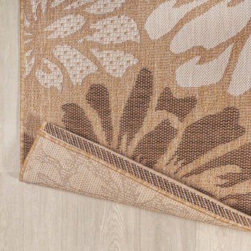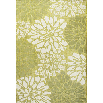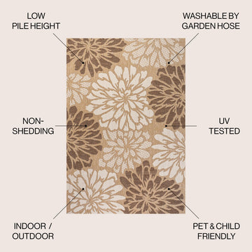 Add some graphic punch to your porch or patio with the bold blooms on our modern floral rug. The large-scale pattern has a geometric effect in a simple palette of sage green, brown and beige. The flatweave design is great for high-traffic spaces indoors too.