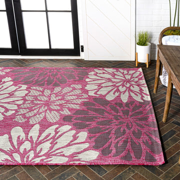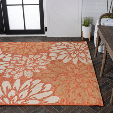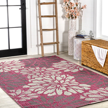 Zinnia Modern Floral Textured Weave Indoor/outdoor Area Rug