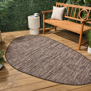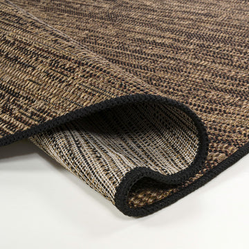 This modern outdoor rug has a minimalist look, with its organic shape and earthy colors. Woven from synthetic fibers, this easy-care rug goes from rustic lodge to urban loft. Use it outdoors on a porch, or in the living room, entry, bedroom or dining room.