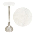 Ava 23.75" Art Deco Contemporary Metal Pedestal Drink Table and Decorative End Table with White Marble Round Top and Hammered Base