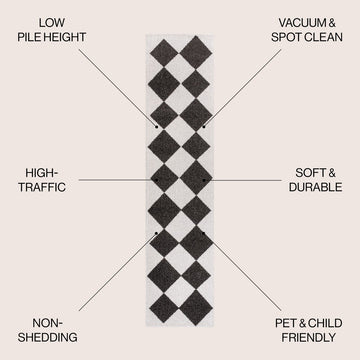 Inspired by vintage and mid-century designs, our diamond pattern rug has a soft, durable pile. The geometric pattern is woven in just two colors for a crisp and classic look. Add graphic punch to your living room, dining room, bedroom, or kids room with this easy-care, family-friendly rug.