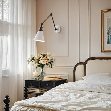 With an adjustable arm and easily focused metal shade, this sconce is the perfect solution for bedside lighting - no nightstands required! For added luxury, have your electrician install a switch below each light so you don't have to get out of bed to turn it on or off. When space is limited, they also make for excellent focused lighting, such as over bulky wall art, or above a vanity mirror. With LED compatibility, you'll rarely have to reach up to change the bulb.