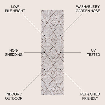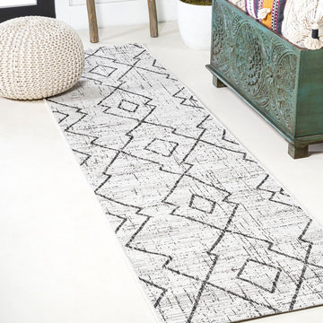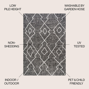 Moroccan influences abound in the geometric design of our tribal-inspired rug. The traditional diamond trellis pattern has the handwoven look popular in mid-century modern interiors. Add graphic impact to a modern living room, dining room, bedroom, kitchen or entry, and create your Boho-chic story with this easy-care rug.