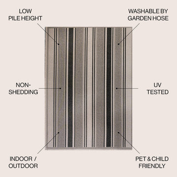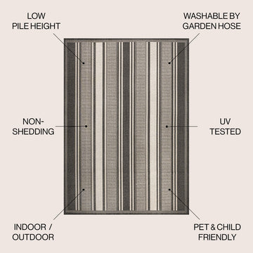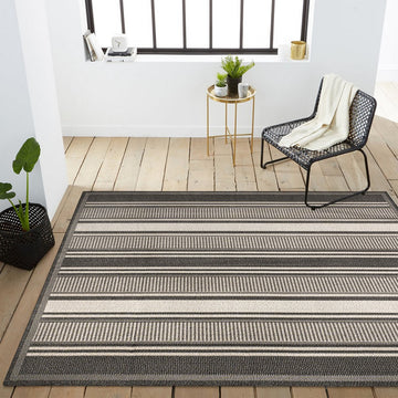 Inspired by the clean lines of modern design, our unique stripe-on-stripe rug has a durable low pile. This versatile two-tone pattern is woven in contrasting colors for a low-key, minimalist look. Add graphic punch to your living room, dining room, bedroom, or porch with this easy-care, family-friendly rug.