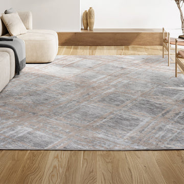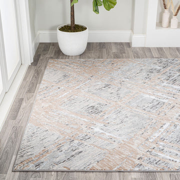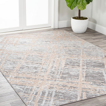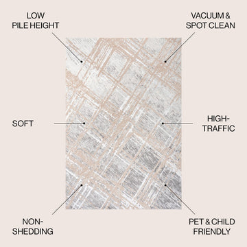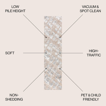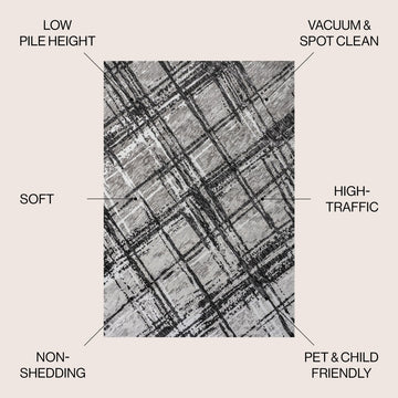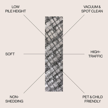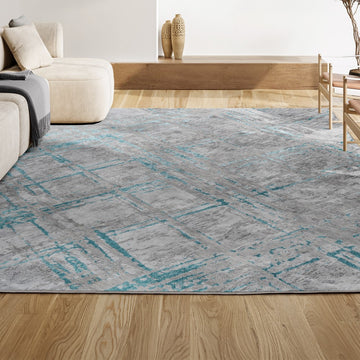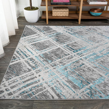 Mingled threads of turquoise, gray and ivory create a modern, abstract linear design with a mid-century look. This rug's unique crisscrossing pattern makes it perfect for homes with kids and pets. It's the ideal centerpiece for a contemporary, coastal or minimalist interior.