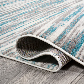 Mingled colors form an abstract stripe pattern to create a linear design with modern flair. This rug's busy pattern and gradient colors make it perfect for homes with kids and pets. It's a versatile addition to the living room, bedroom or dining room that's got a contemporary, coastal or minimalist interior.