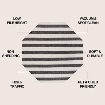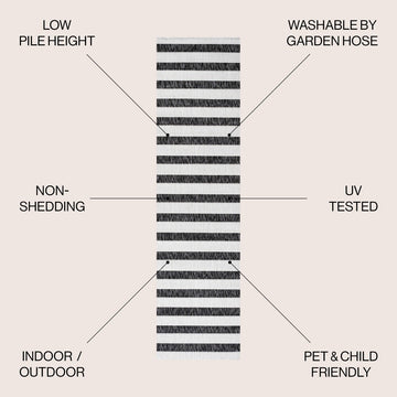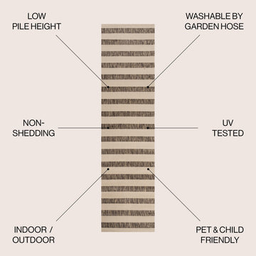 A simple wide stripe is woven with a mingled effect to create a classic neutral rug. This versatile rug is perfect for your tropical cottage porch or modern outdoor patio. The traditional stripe is a family-friendly solution for a casual living room, modern bedroom, kitchen hallway, entry or kids bedroom. The pet-friendly and kid-proof flatweave design makes it easy to clean, and perfect for the beach house.