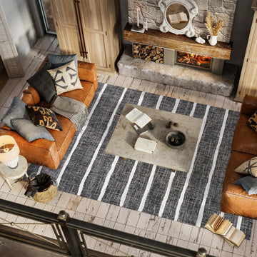 Inspired by Berber rugs, our modern striped rug has a soft, low pile. The scattered stripe pattern recalls the tribal rug designs made popular by mid-century design. With its easy-care fibers, this versatile rug is ideal for a living room, dining room, entry or bedroom.