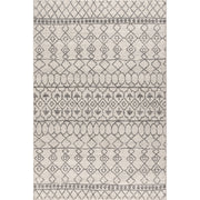 Inspired by vintage Moroccan tribal rugs, our modern version is power-loomed with a short pile. Berber rug motifs are woven in gray on a field of ivory; the mingled threads recall traditional handwoven rugs. Add some Bohemian style to your home with this easy-care rug.
