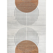 - A cream background with modern orange circles and geometric black curves complement one another in this contemporary design