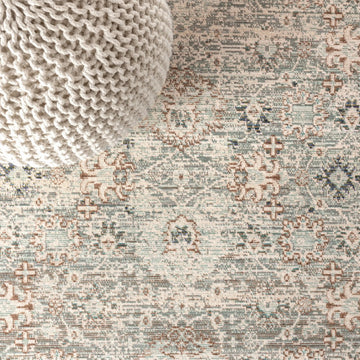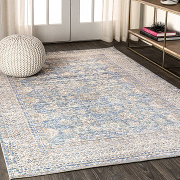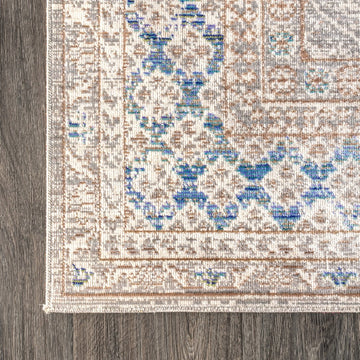 This rug is a classic, with shabby-chic style inspired by English Country homes. A center field of yellow with stylized flowers is surrounded by a stylish argyle border. This ornate rug is an elegant touch for your living room, bedroom, dining room, or den.