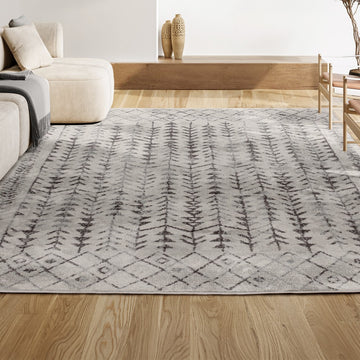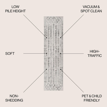 Inspired by vintage Moroccan tribal rugs, our modern version is power-loomed with a short pile. Classic Berber motifs are woven in gray on a field of ivory; the mingled threads recall traditional handwoven rugs. Add some Bohemian style to your home with this easy-care rug.