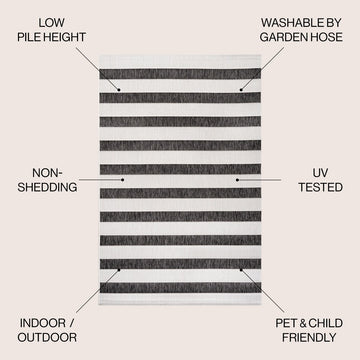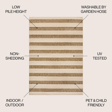 A simple wide stripe is woven with a mingled effect to create a classic neutral rug. This versatile rug is perfect for your tropical cottage porch or modern outdoor patio. The traditional stripe is a family-friendly solution for a casual living room, modern bedroom, kitchen hallway, entry or kids bedroom. The pet-friendly and kid-proof flatweave design makes it easy to clean, and perfect for the beach house.